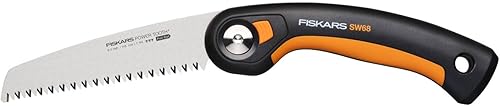 Fiskars Plus Klappsäge, Für dicke Stämme und Äste, 3 Schneidpositionen, Scharfes Power Tooth-Blatt, Grobzahnung, Blattlänge: 21 cm, Schwarz/Orange, SW69, 1067553