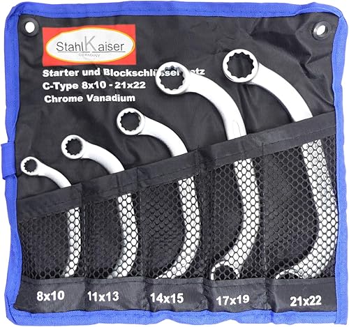 Doppelringschlüssel Satz 5 tlg C-Form 8-22 mm Ringschlüssel gebogen Zwölfkant