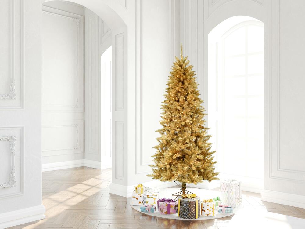 Vickerman 6.5' x 40" Gold Fir Artificial Christmas Pencil Tree Warm White Dura-Lit® LED Lights