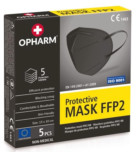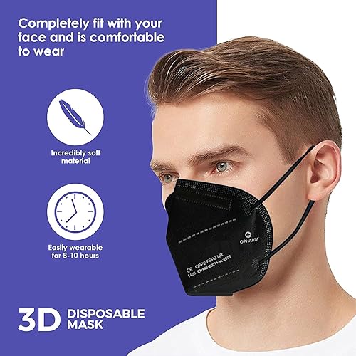 50x FFP2 Schutz Maske Mundschutz Atemschutzmaske Zertifiziert - Atmungsaktives Falten mit Nasenklemme CE1463 EN149:2001+A1:2009 Schwarz/Black