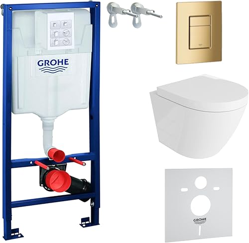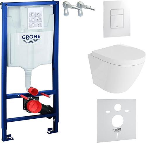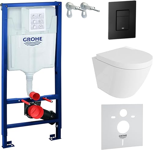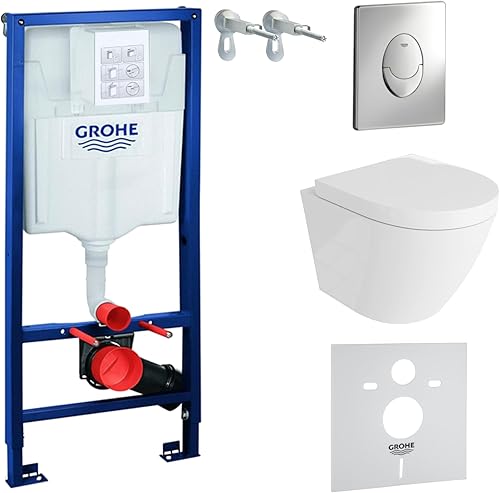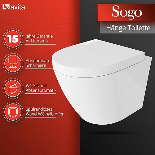 LAVITA Vorwandelement Solido Start + Wand Hänge WC Sogo Weiß Spülrandlos + + WC Sitz mit Absenkautomatik Verchromter Knopf Komplettset Unterputz Spülkasten Toilette Komplett Sett WC