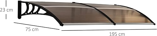 Outsunny Pultvordach Vordach für Haustür 75x195x23 cm Überdachung 5mm Polycarbonat Sonnenschutz Regenschutz für draußen Alu Braun