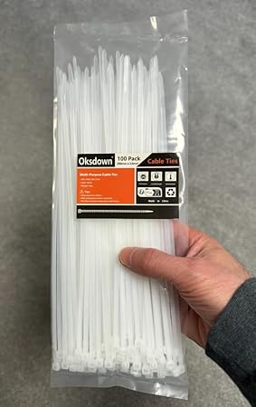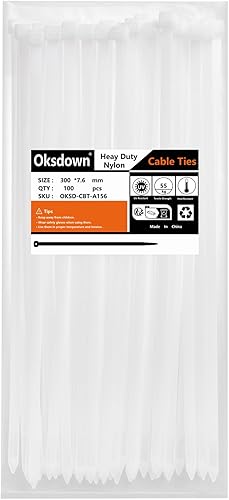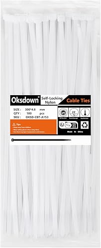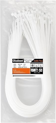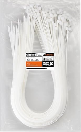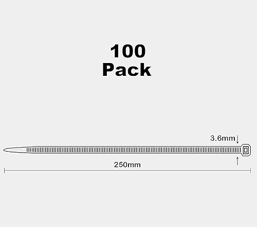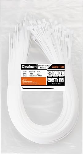 Oksdown 100 Stück 250mm × 3,6mm Weiß Kabelbinder mit 18 kg Zugfestigkeit UV-Beständig Nylon Kunststoff Selbstsichernder Multifunktionaler Cable Zip Ties