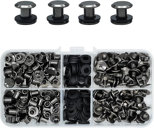 120 Set Chicago Screw Posts, Rivet Chicago Binding Screws, Metal Rivet Ersatzreparatur für Taschen, Handwerk, Halsband, Geschirr, Gepäck, Geldbörse, Hundeleine, Rucksack, Gürtel (Schwarz)