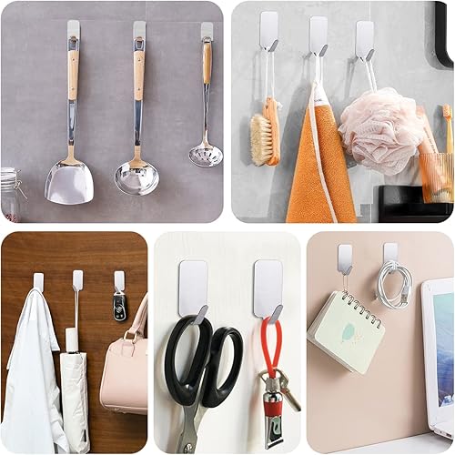 flintronic Haken Selbstklebend Edelstahl, 14 Stück Handtuchhaken Ohne Bohren, Wandhaken Klebehaken, Starke Klebehaken für Wand, Wasserdicht Handtuchhaken für Küche Badezimmer Wohnzimmer Toilette Büro