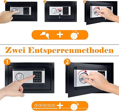 TRMLBE 34L Tresor für Zuhause Möbeltresor 38x30x30cm Safe Tresor Elektronischer mit Digitaler Passwort und 2 Sicherheitsschlüssel Wandtresor für Geld Schmuck, Schwarz