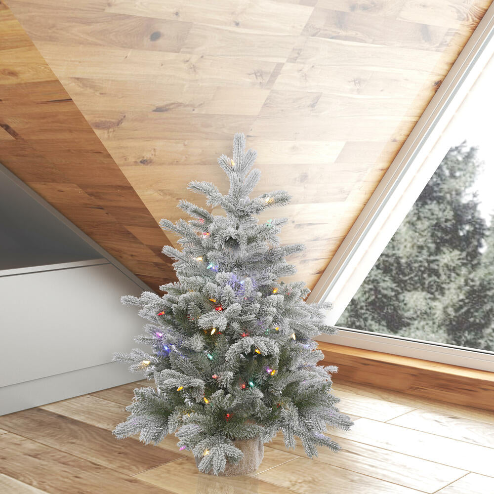 Vickerman 7.5' Flocked Sierra Fir Slim Artificial Christmas Tree Clear Dura-Lit lights