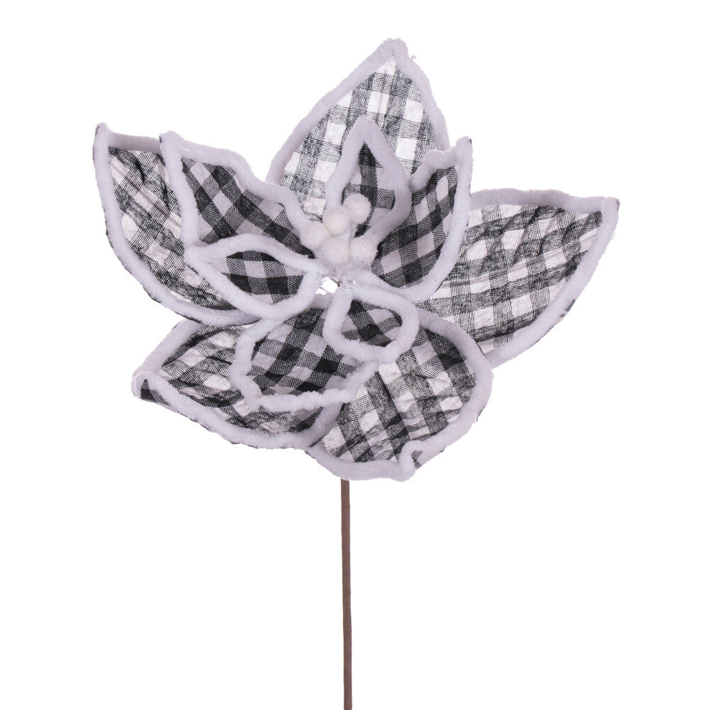 Vickerman 11" Black and White Plaid Flower with White Outline on Stem 6 per bag.