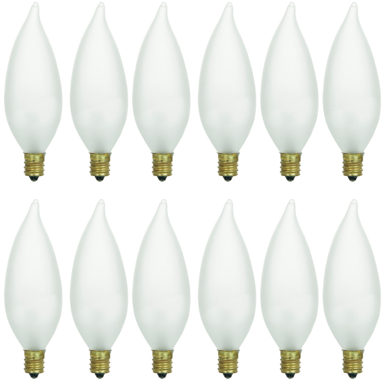 Sunlite 40035-SU 12-Pack Flame Tip Chandelier Bulbs, 60 Watts, Candelabra Base (E12), 120 Volt, Frost, Incandescent, Dimmable, 32K - Warm White
