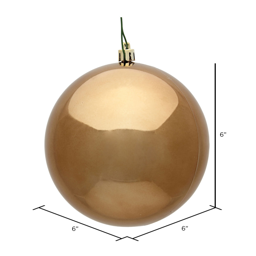 Vickerman 6" Mocha Shiny Ball Ornament 4 per Bag