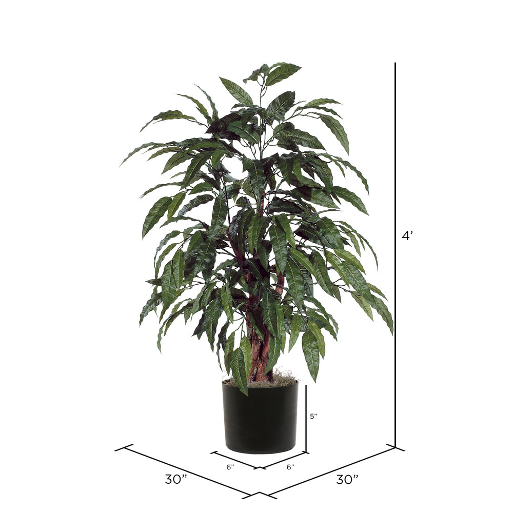 Vickerman 4' Artificial Mango Bush Black Plastic Pot.