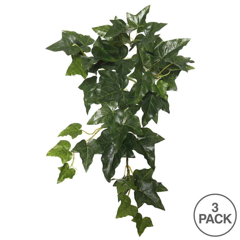 Vickerman 18" Artificial Green English Ivy Hanging Bush 3/pk