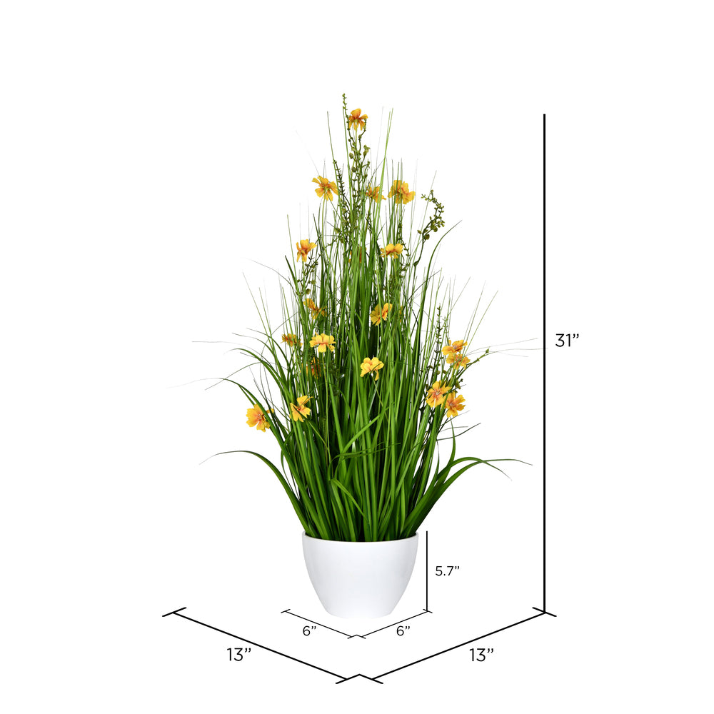 Vickerman 31" Artificial Potted Yellow Cosmos and Green Grass.