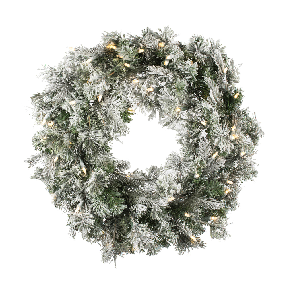 Vickerman 24" Flocked Kiana Artificial Christmas Wreath Warm White Dura-Lit® LED Mini Lights
