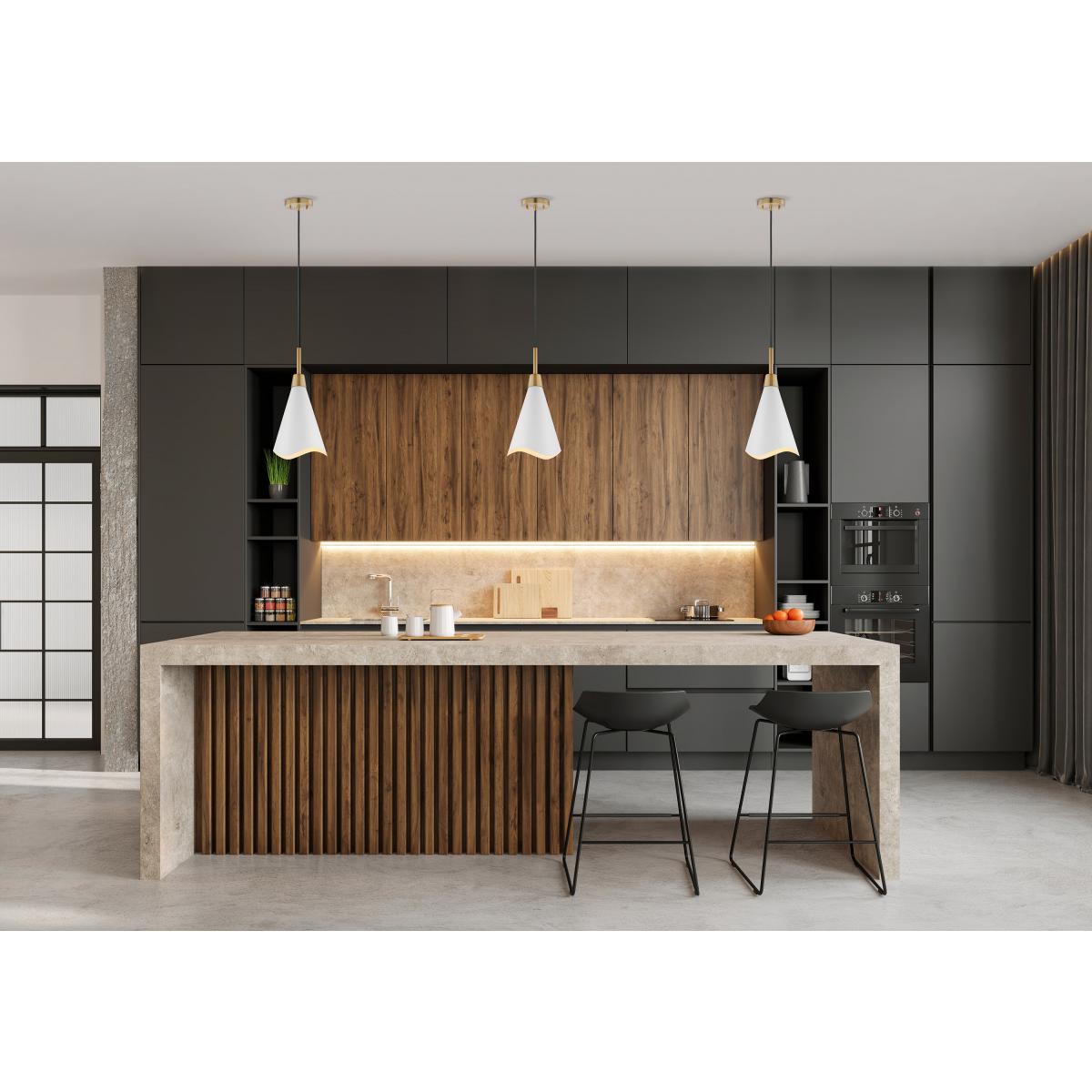 60-7471 TANGO 1 LIGHT SMALL PENDANT Tango; 1 Light; Small Pendant; Matte White with Burnished Brass