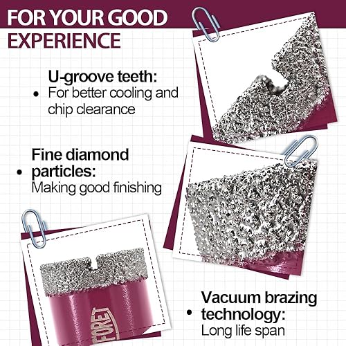 QUEFORET Diamant Fliesenbohrer Set 6mm x M14-5 Stücke Bohrkronen für Fliesen Keramik Porzellan Marmor Granit, für Winkelschleifer