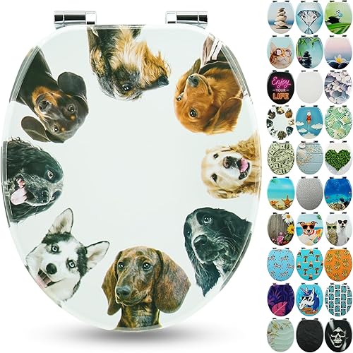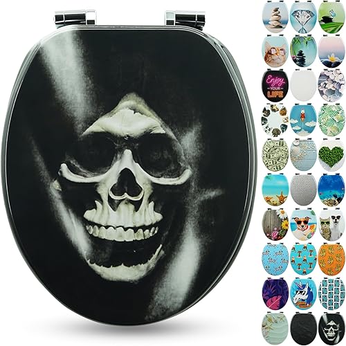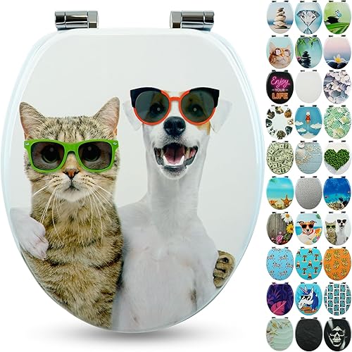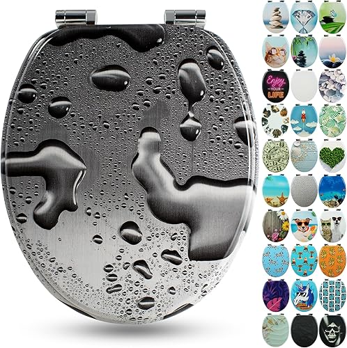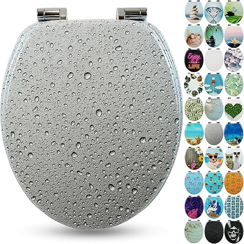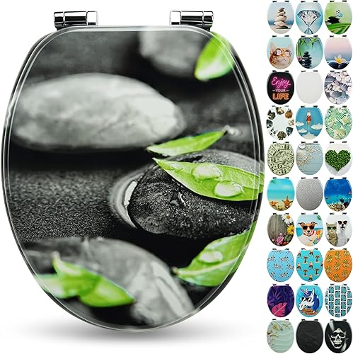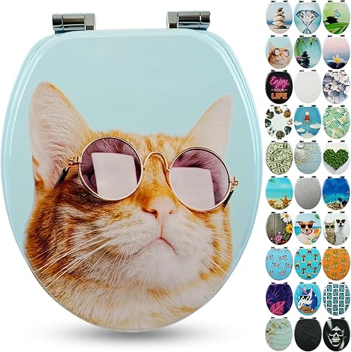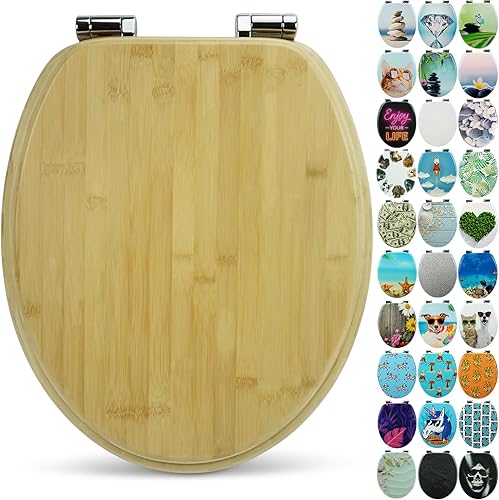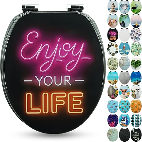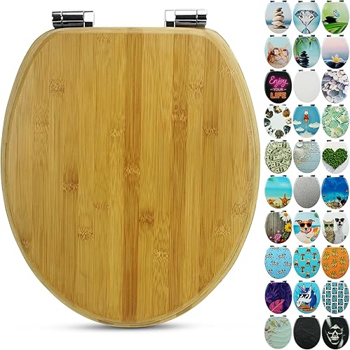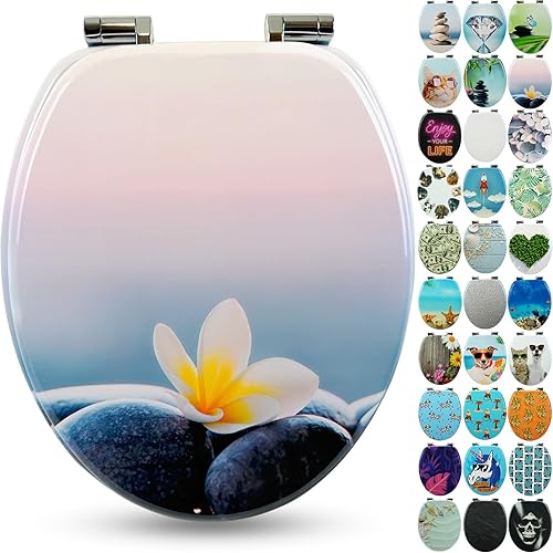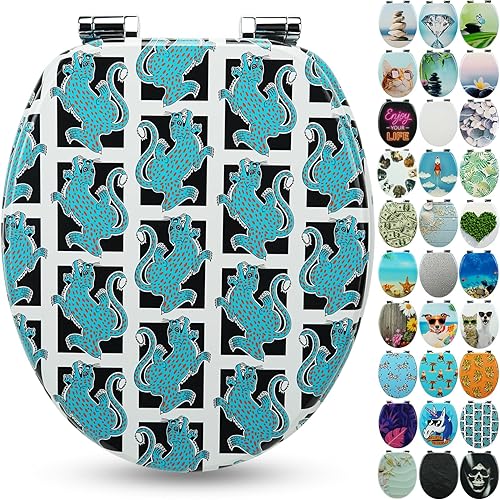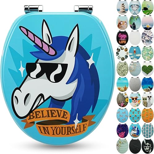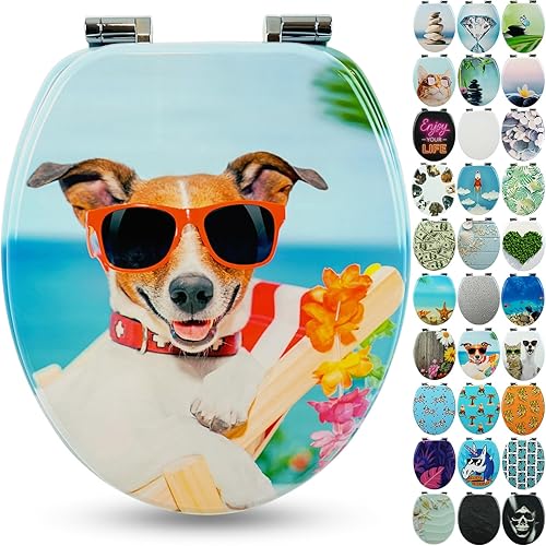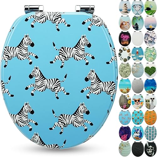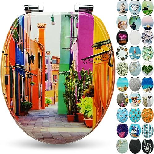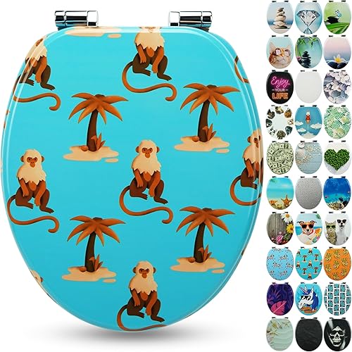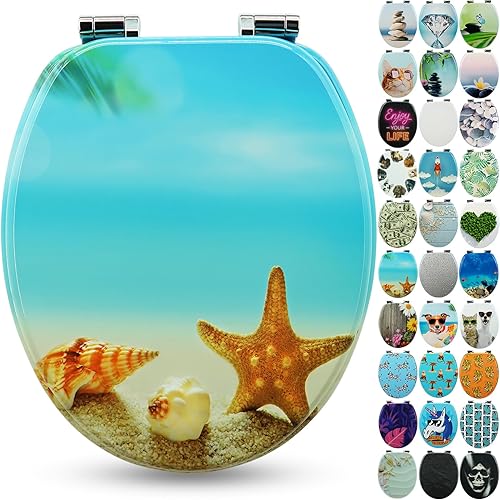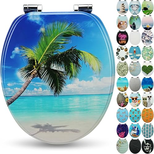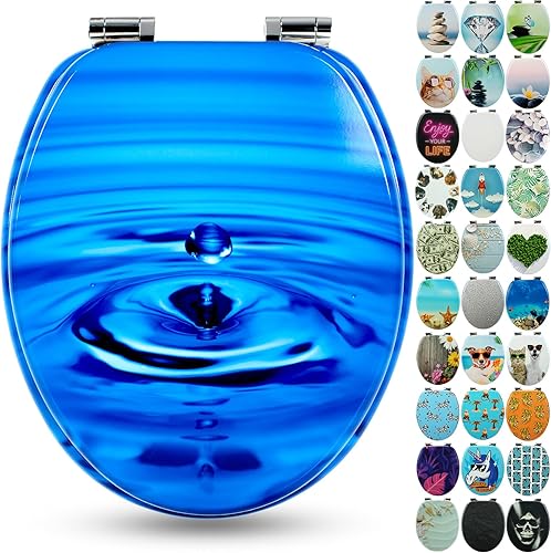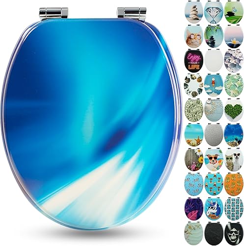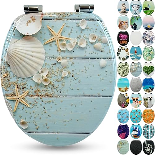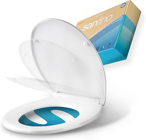 SANFINO® Premium WC Sitz mit Absenkautomatik – hochwertige Toilettendeckel aus Holz, viele bunte Motive, hoher Sitzkomfort, einfache Montage inklusive Montageanleitung – 'Caribbean Blue'