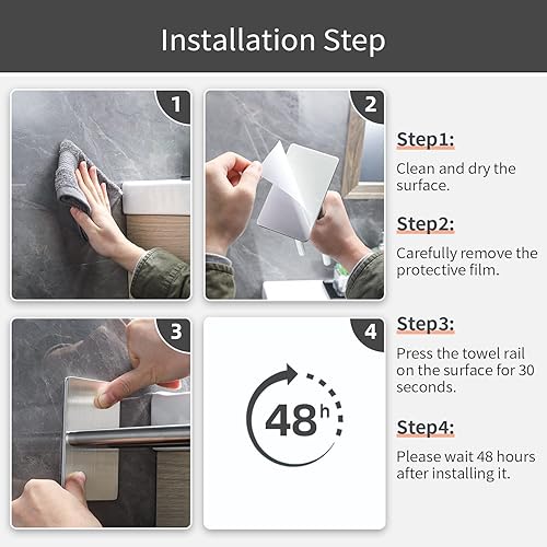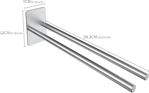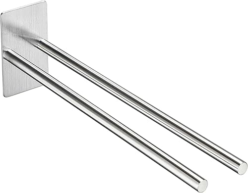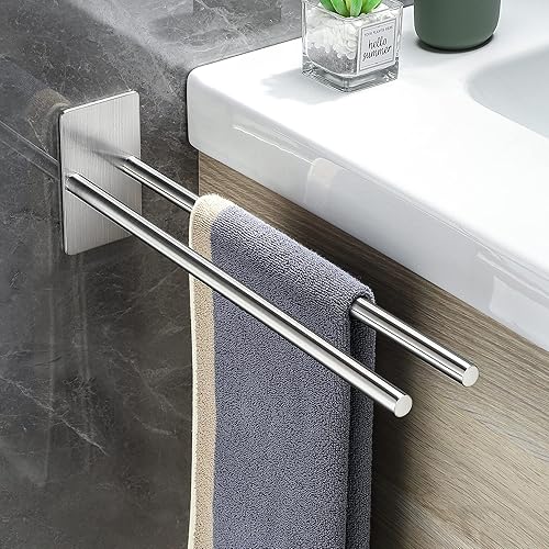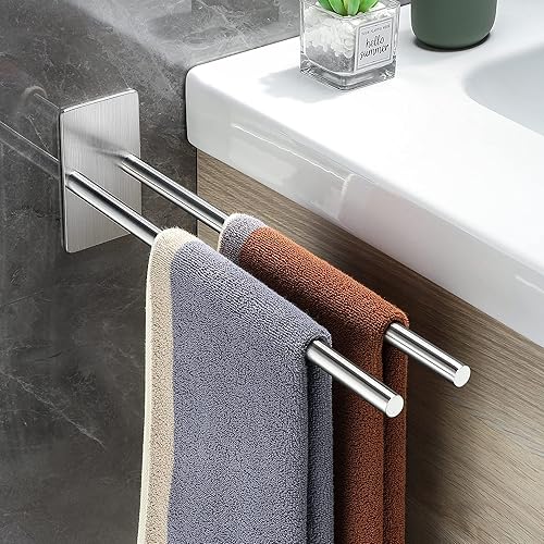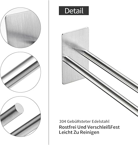 Gsocel Handtuchhalter Ohne Bohren Zweiarmig 304 Edelstahl Handtuchhalter Selbstklebend Handtuchstange Doppelter Ohne Bohren Badetuchhalter für Bad küche Wand Silber 38CM