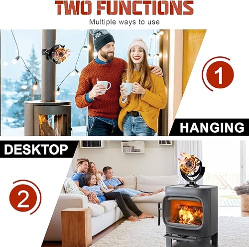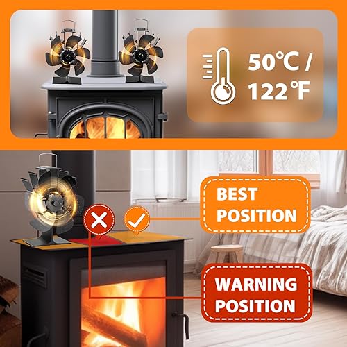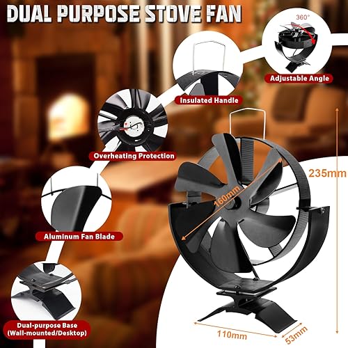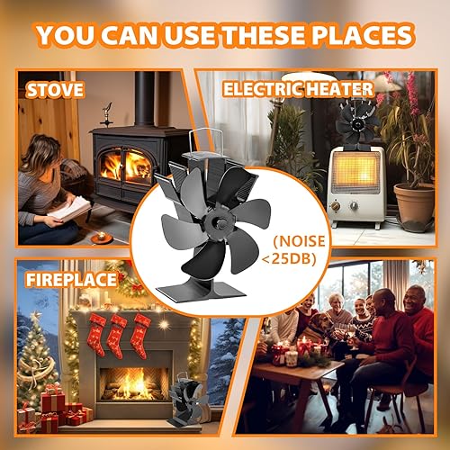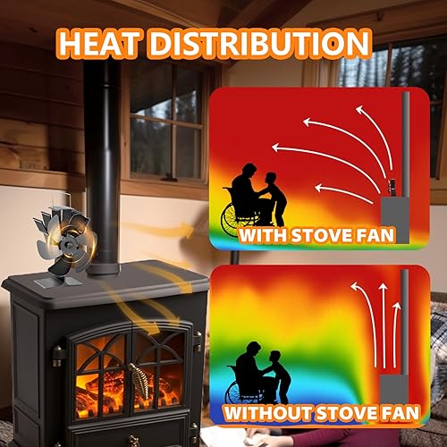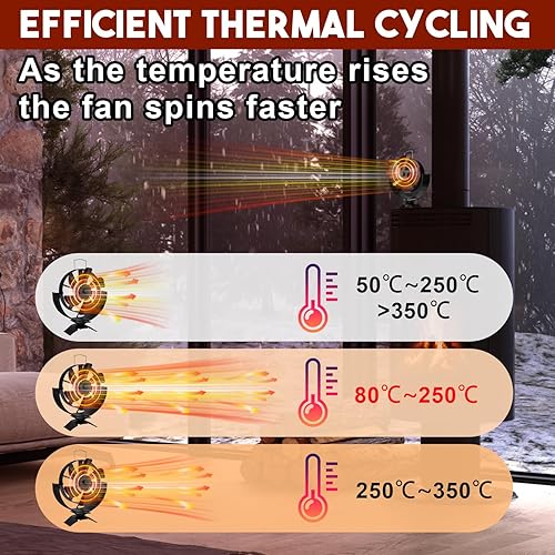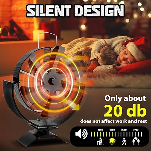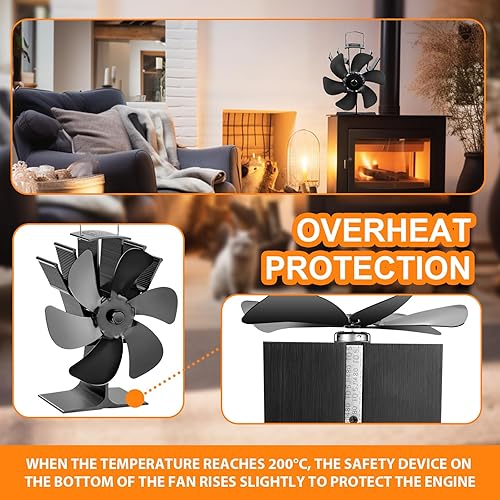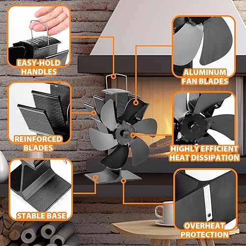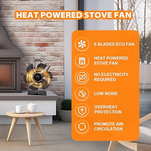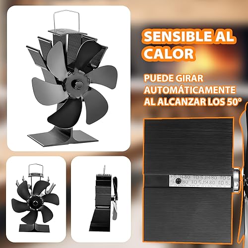 KAEFUYS Ofenventilator Kaminventilator Ohne Strom mit 6 Blättern Leiser Betrieb Ofenventilator mit Thermometer Effiziente Wärmeverteilung Kaminventilator Stromloser für Kaminofen/Öfen/Holz