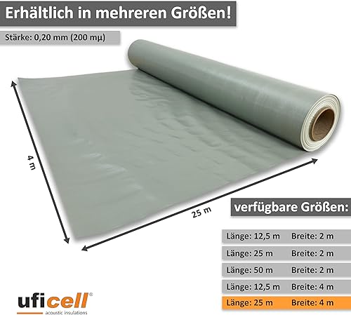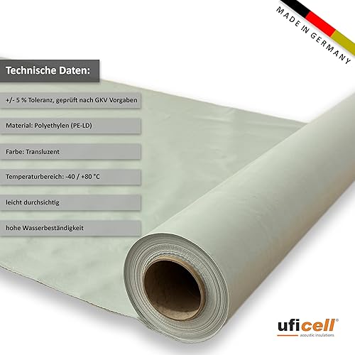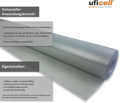 uficell Aqua-Stopp Baufolie, Estrichfolie, PE-Folie, Dampfsperre 0,2 mm Stark unter Laminat-/Parkettböden bei erhöhter Restfeuchte bzw. Einsatz einer Warmwasser Fußbodenheizung (25 m² (12,5m x 2m))