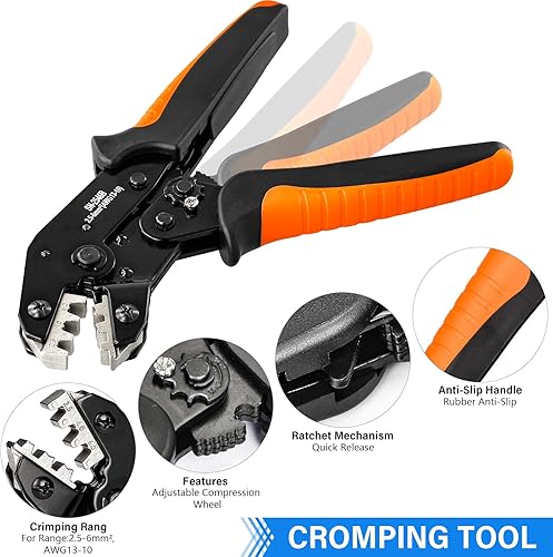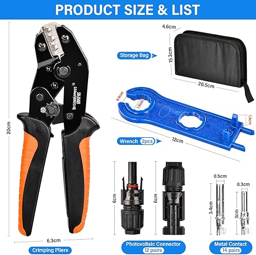 Solar Crimpzange Set für 2.5/4/6mm² PV Kabel,14 Paar Kabelstecker,12 Paar Männlich/Weiblich Stecker und 2 Schraubenschlüssel,IP68 Wasserdicht,für Solaranlage Photovoltaik