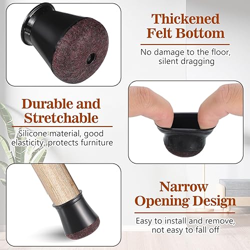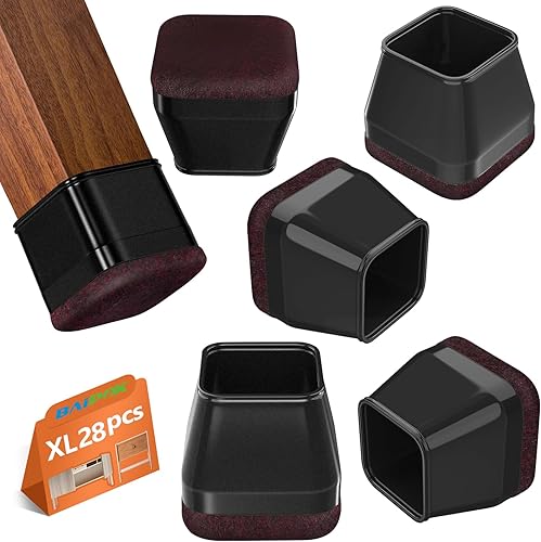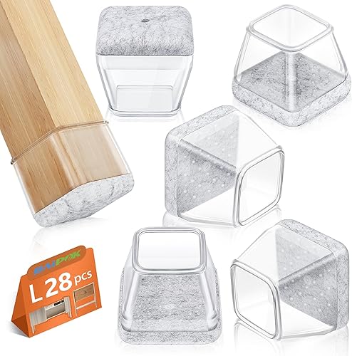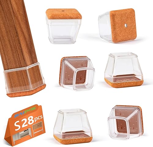 28 Stück Schutzkappen für Stuhlbeine, BAIPOK Silikon Stuhlbeinschoner mit Filz, Transparent Schutz für Stuhlbeine, Gummi Stuhl Beinkappen für Hartholzböden (23-29mm)