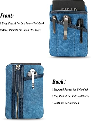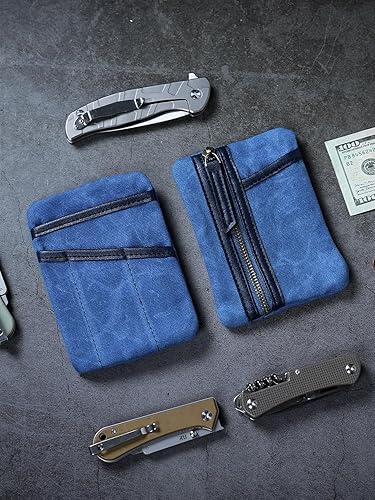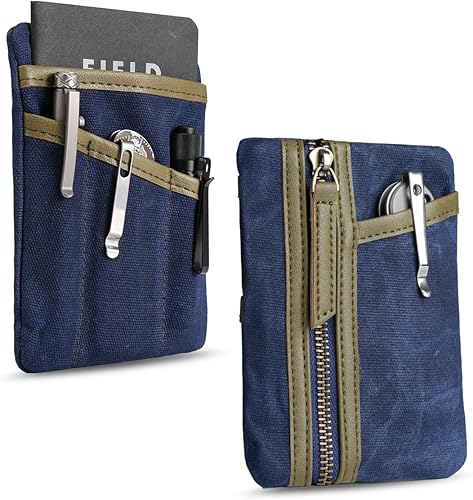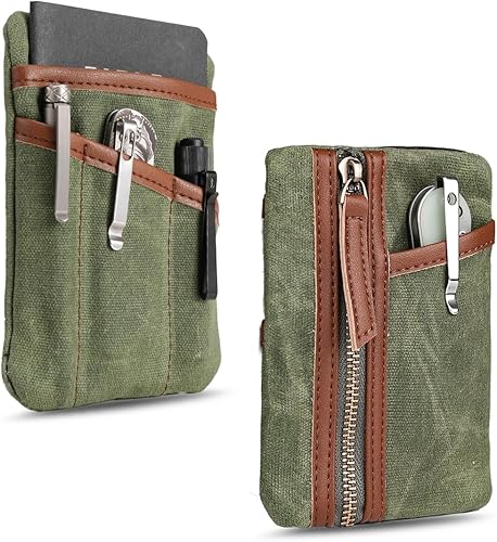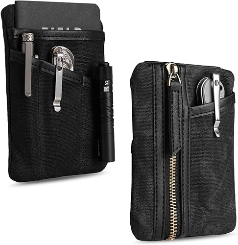 Sayram SP6 EDC Pouch Tasche, kompakter EDC Taschen Organizer aus gewachstem Canvas, Reißverschlusstasche für Herren, EDC Pocket Organizer für Kleingeld, Notizbuch, Taschenlampe
