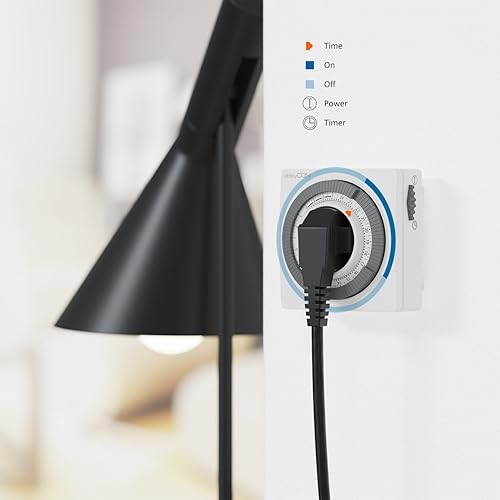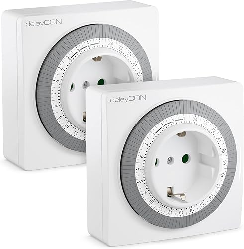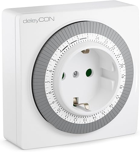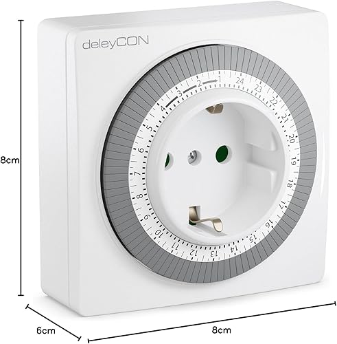 deleyCON 1x Mechanische Zeitschaltuhr Zeitschalter Schaltuhr Timer Manuell Einstellbar über Drehscheibe 96 Schaltungen Innenbereich 3500W Weiß