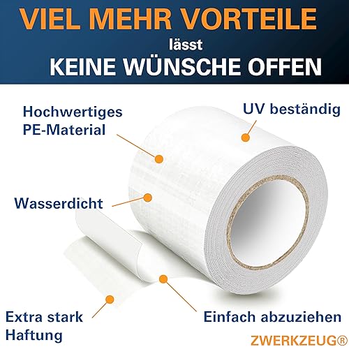 ZWERKZEUG Planenband - Reparaturkleberband – extra lang 8cm x10m - hohe Klebekraft – UV beständig – Wasserfest – in zwei Farben erhältlich - geeignet für Abdeckplane, Gewerbeplane, Zelt, Sonnenschirm