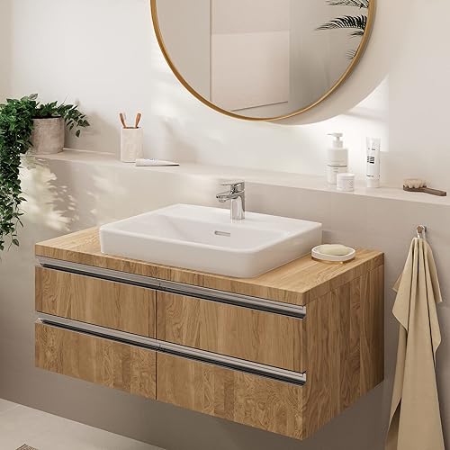 hansgrohe Vernis Blend - Waschtischarmatur ohne Ablauf, Wasserhahn Bad mit Auslauf Höhe 71 mm, Mischbatterie Waschbecken wassersparend (EcoSmart), Chrom, 71558000