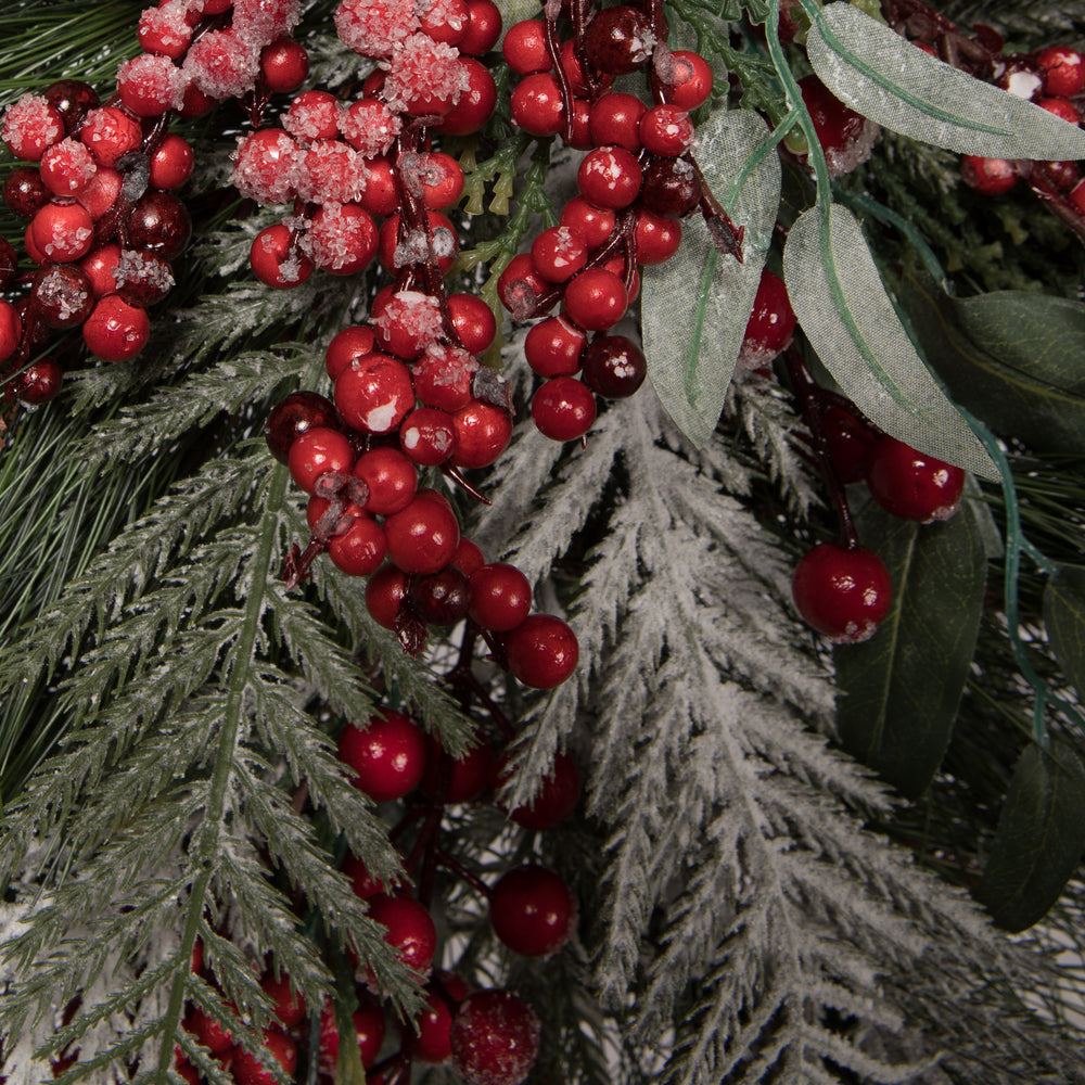 Vickerman 30" Frosted Artificial Christmas TearDrop with 41 PE Tips Red Berries Green and Frosted Foliage
