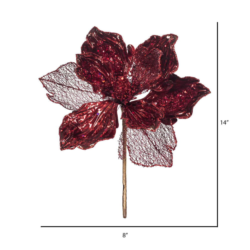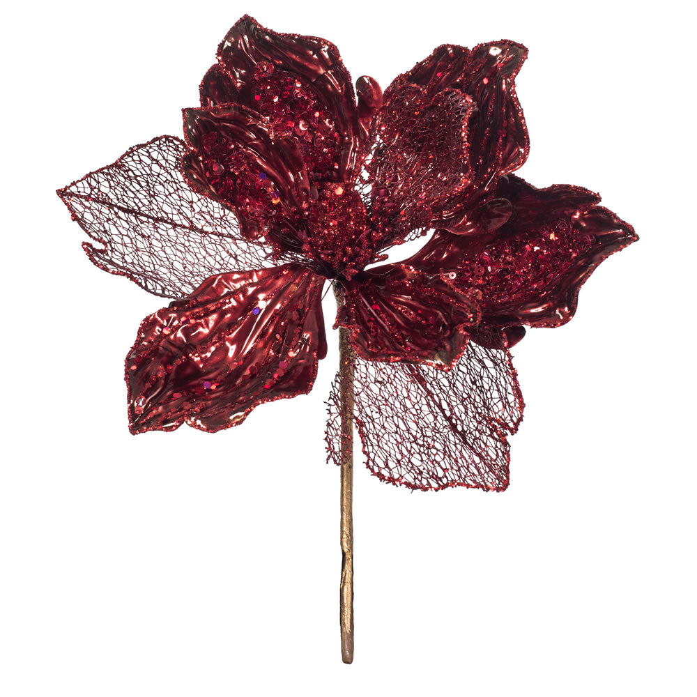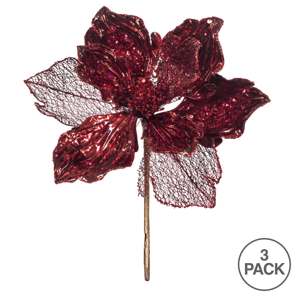 Vickerman 14" Burgundy Pearl Glitter Magnolia Artificial Christmas Stem 3 per Bag