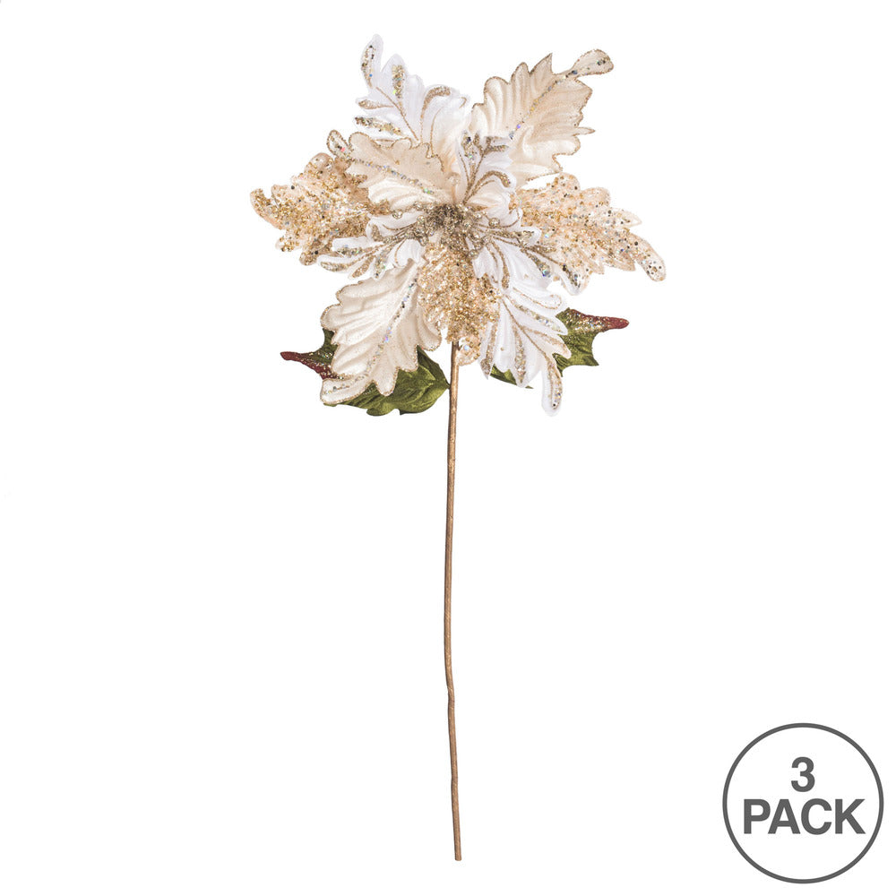 Vickerman 20" Gold Glitter Poinsettia Artificial Christmas Stem Pack of 3