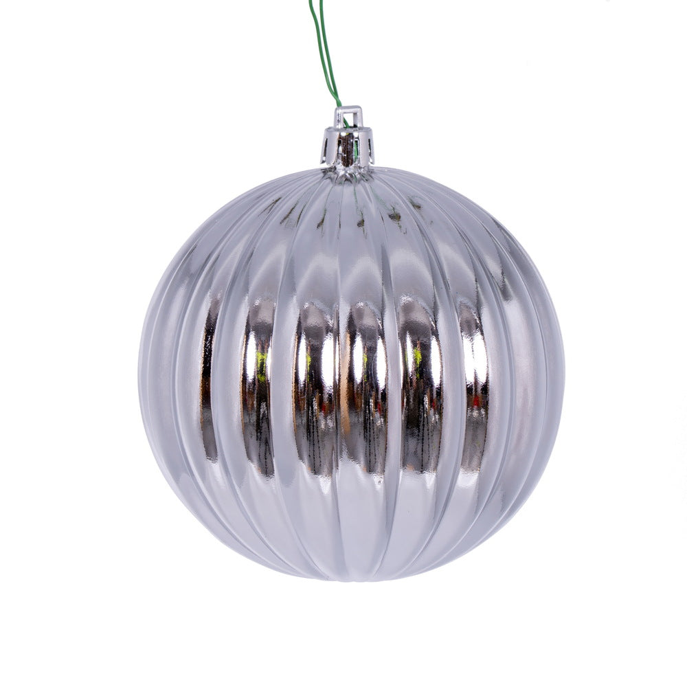 Vickerman 4" Silver Shiny Lined Ball Ornament 6 per Bag.