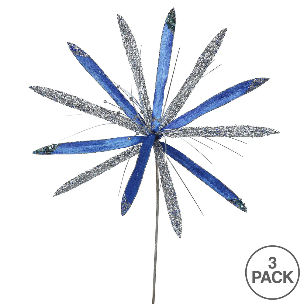 Vickerman 24" Blue Velvet Papyrus Artificial Christmas Pick 3 per Bag