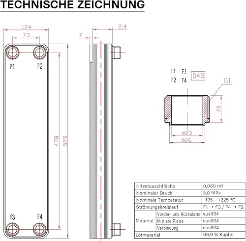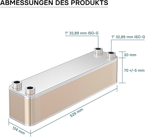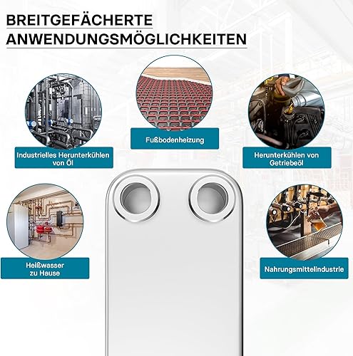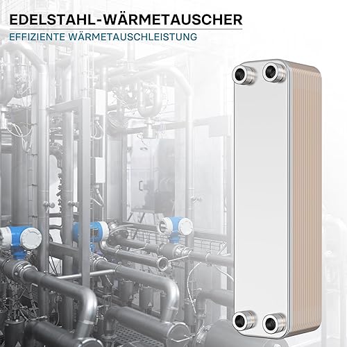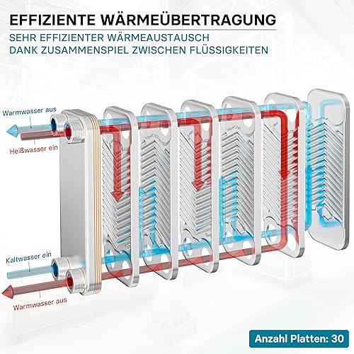 Wiltec Wärmetauscher 30 Platten, max. 330 kW, 22 m³/h 3,33 l je Durchgang, Plattenwärmetauscher aus Edelstahl als Wärmeüberträger