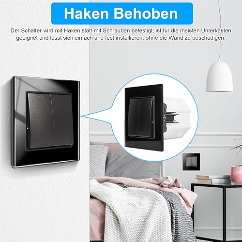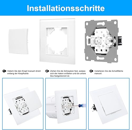 CNBINGO Lichtschalter 1 Fach 1 Weg Glas Lichtschalter Unterputz, Schraubenloser Wippschalter Taktiler Wandschalter Kristall-Wippschalter, weiß