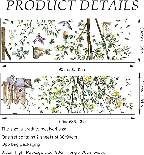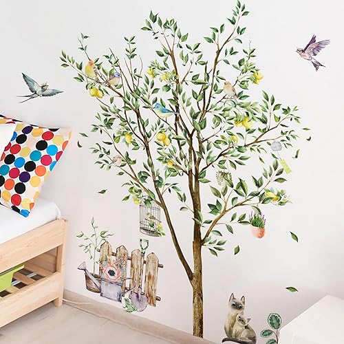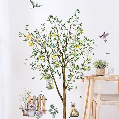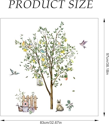 Zitronenbaum Wandtattoo Grüner Baum Wandaufkleber Aufkleber Flieger Vogel Wandsticker Kätzchen Zaun Wandaufkleber Schlafzimmer Wohnzimmer Sofa Hintergrund Wanddekoration (90 * 30 cm 2 PCS)