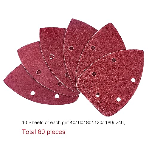 AUSTOR 60 stücke Klett-Schleifdreiecke Maus Detail Schleifpapier 5 Loch je 10 x 40 / 60 / 80 / 120 / 180 / 240 Körnung Für Dreieckschleifer Schleifer