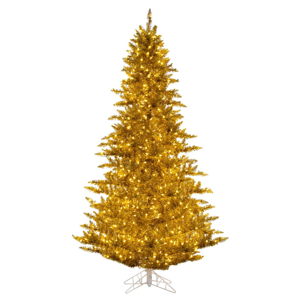 Vickerman 9' x 64" Gold Tinsel Artificial Pre-Lit Christmas Tree with White LED Lights and Tree Stand