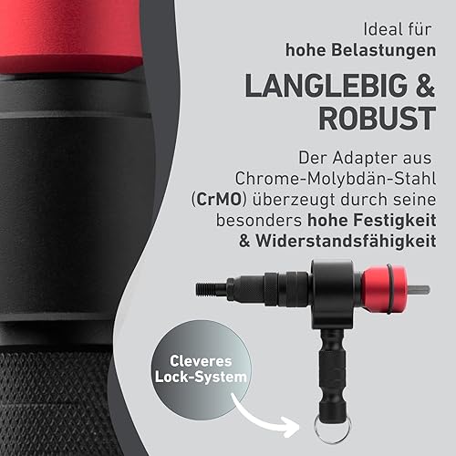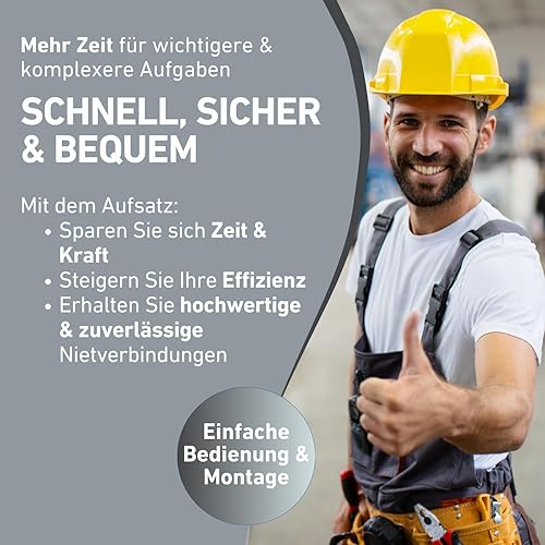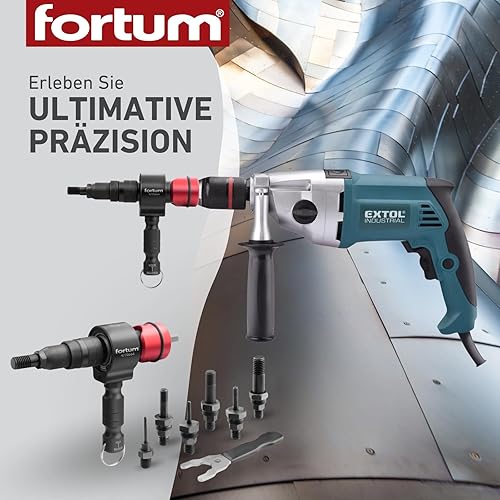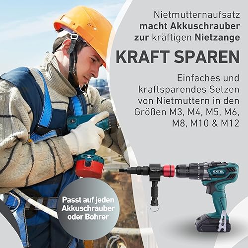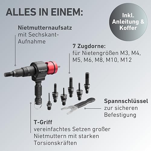 Fortum Nietmmutternaufsatz für Akkuschrauber & Bohrmaschine I Nietgerät für Nietmuttern aus Alu, Stahl & Edelstahl I Blindnietvorsatz für M3-M12 Muttern I Nietpistole Adapter