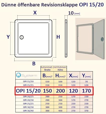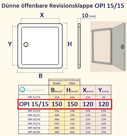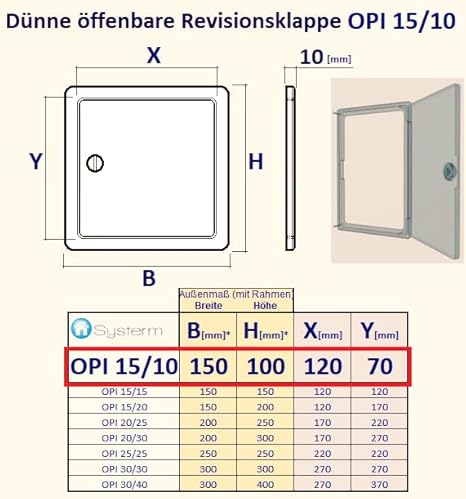 SYSTERM Universal Inspektionsdeckel Außenmaße 15 x 10 cm zu öffnender dünne Revisionsdeckel. Grundlegende öffenbare Revisionsklappe. ABS-Kunststoff Weiß (15x10 – OPI 15/10)