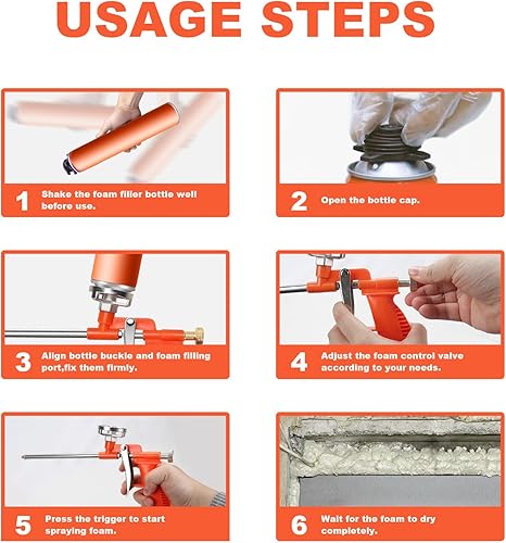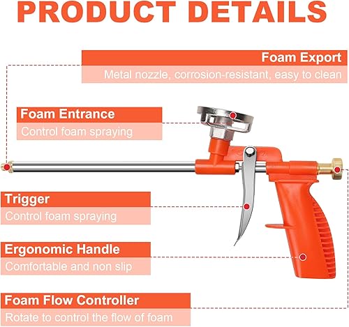 LYCXAMES PU Schaumpistole, 2 Stück Bauschaumpistole, Profi-Dosierpistole aus Metall, Pistolenschaum mit ergonomischem Kunststoffgriff für Heimwerker und Profi zum Verfüllen Abdichten, Orange