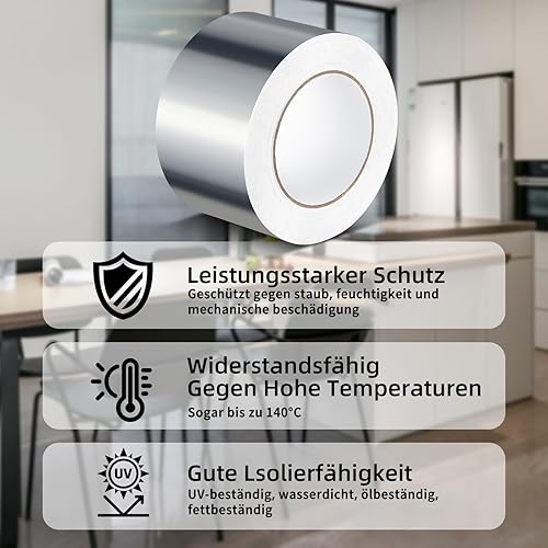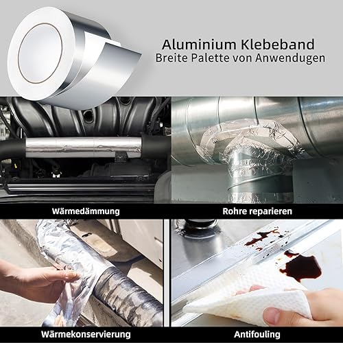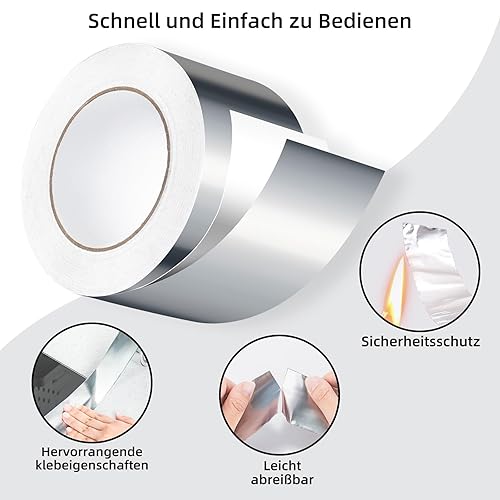 Fosdaling Aluminium Klebeband Hitzebeständig - Selbstklebend Alu-Klebeband - 1 Rollen 75mm X 50m Silber Aluband - Wasser- und Dampfdicht, Aluminium Tape zum Reparieren, Versiegeln und Isolierung