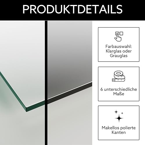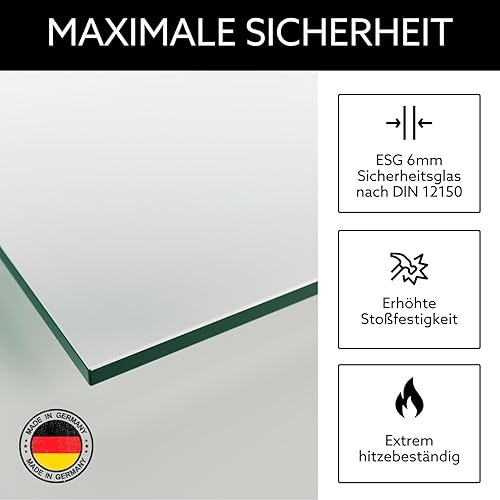 Glasplatte Tisch 60x120 ESG Glas 6mm nach Maß klar - Glasscheibe 60 x 120 cm für Schreibtisch Schminktisch - Sicherheitsglas Glasplatten nach Maß rechteckig als Schutz transparent