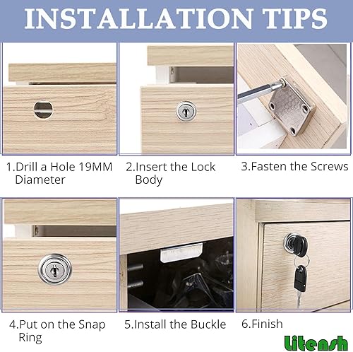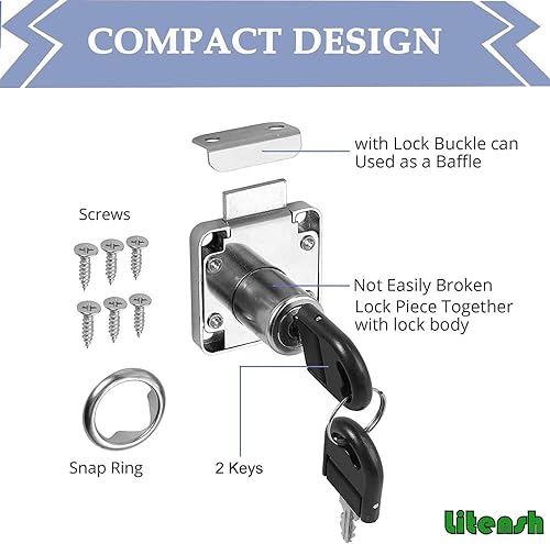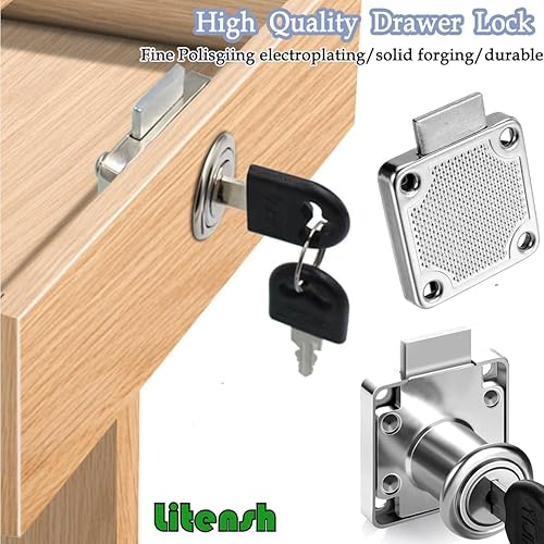 Litensh 2PCS Cam Lock 22mm, Sicherheits Schrankschloss mit Schlüssel, Verschiedene Möbelschloss Aufschraubschloss Möbelschloß für Möbelschrank Briefkasten Schublade Haushalt Büro