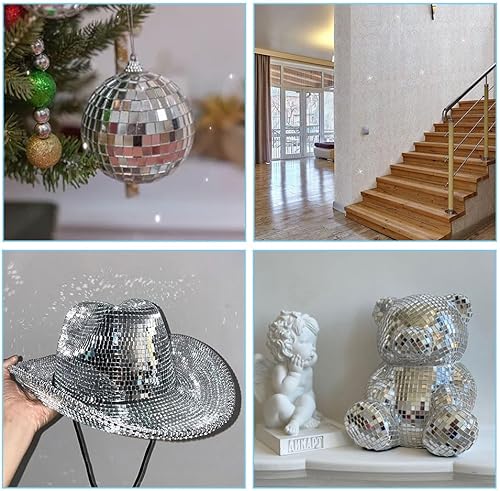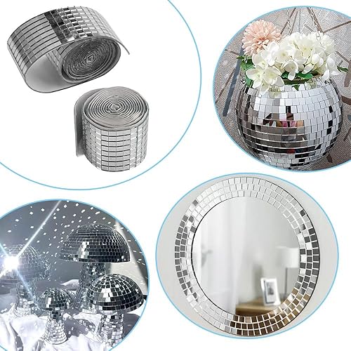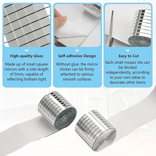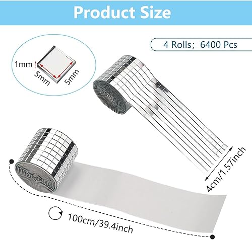 4 Rollen 6400 Stück Spiegel Mosaik Selbstklebend,Selbstklebende Mini Spiegel 5 x 5 mm Glas,Spiegel Mosaik Fliesen Disco Kugel,Mini Mosaik Spiegelfliesen für KTV Hause DIY Dekoration,4 x 100 cm/Rolle