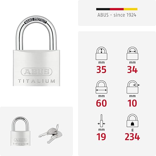 ABUS Vorhängeschloss Titalium 64TI/60 gl.-6607 - gleichschließend - Kellerschloss mit Schlosskörper aus Spezial-Aluminium - gehärteter Stahlbügel - ABUS-Sicherheitslevel 6