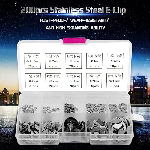 Akozon E-Clip 200pcs Edelstahl E-Ring Sicherungsring Sortiment M1.5-M10 Sicherungsscheiben