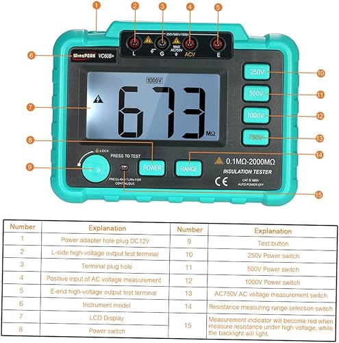 VISLONE VC60B+ LCD Digital Insulation Resistance Tester Megohm Meter Megohmmeter DC250V/500V/1000V AC750V